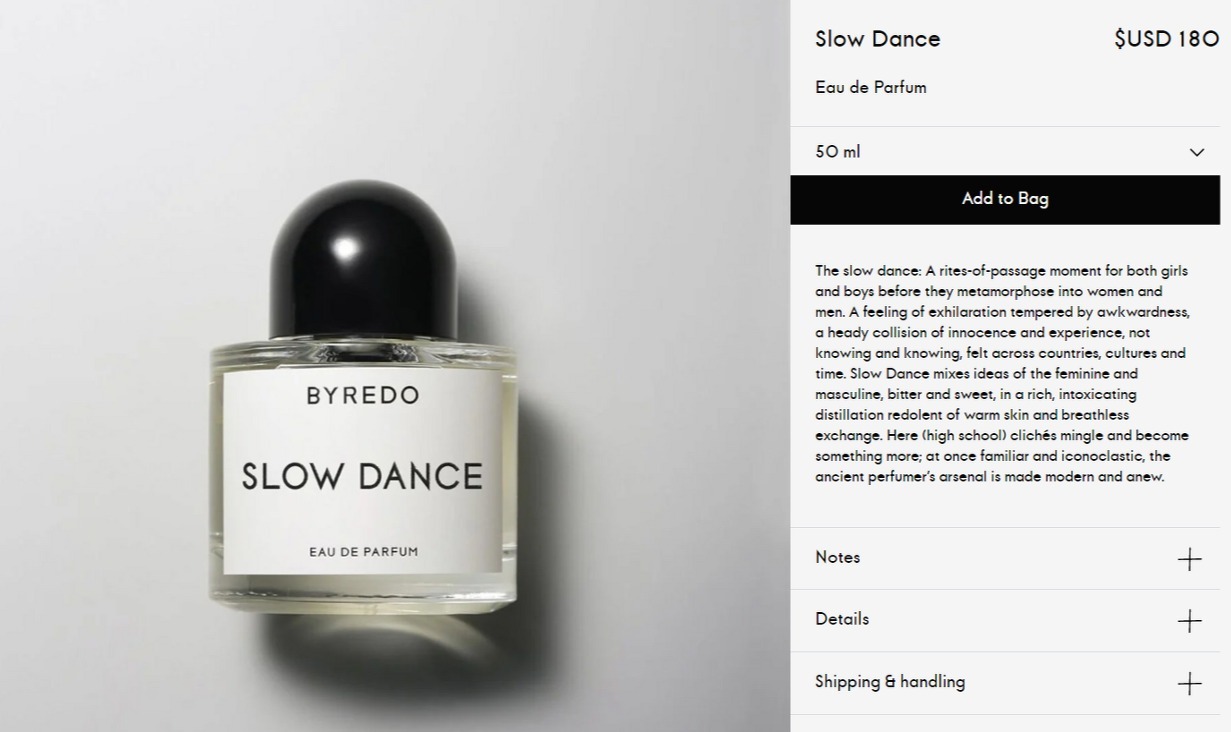 바이레도(BYREDO)는 '향기에 의한'을 뜻하는 By Redolence의 줄임말입니다. 바이레도의 창립자 벤 고햄( Ben Gorham)은 인터뷰에서 '이름은 사람들에게 첫 상상을 불러일으키기 때문에 매우 중요하다'라고 말했듯, 제품 외형에는 제품명이 가장 크게 자리 잡고 있는데요. 여기에서 바이레도의 심플함을 살펴볼 수 있습니다. 투명한 유리병에 검은색 반구 모양의 뚜껑, 하얀 라벨에 검은색 잉크로 새겨진 향수 이름이 전부입니다.