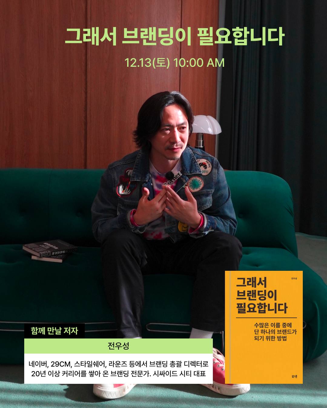 토요일 오전 10시!! 🕙 (주말인데...너무 빠른 거 아냐?) 조금 더 자고 싶은 토요일 오전이지만, 이 시간에도 브랜드를 이야기 하고 싶은 그 누구보다 열정적인 사람들과 책의 저자를 함께 만나 브랜드, 일, 커리어, 나아가 삶에 대한 이야기를 나눠볼 예정입니다.