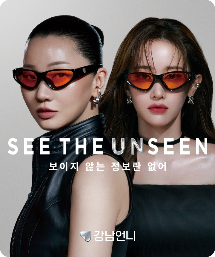 작년에는 ‘아름답도록 정확한 정보’라는 슬로건으로 첫 브랜드 캠페인을 선보였고, 모델 장윤주와 배우 전종서를 앞세워 강남언니의 브랜드 방향성을 매력적으로 전달했어요. 그리고 올해 여름, 강남언니는 <SEE THE UNSEEN> 캠페인을 선보이며 고객 관점으로 브랜드 메시지를 확장합니다. ‘강남언니를 쓴다’는 건 ‘보이지 않던 정보가 보인다’는 의미이기도 하죠. ‘쓰는 순간, 보이지 않는 정보란 없어’라는 슬로건과 함께, ‘쓰니까 보인다’는 고객 가치를 ‘선글라스’로 구체화하여 선보인 것입니다.