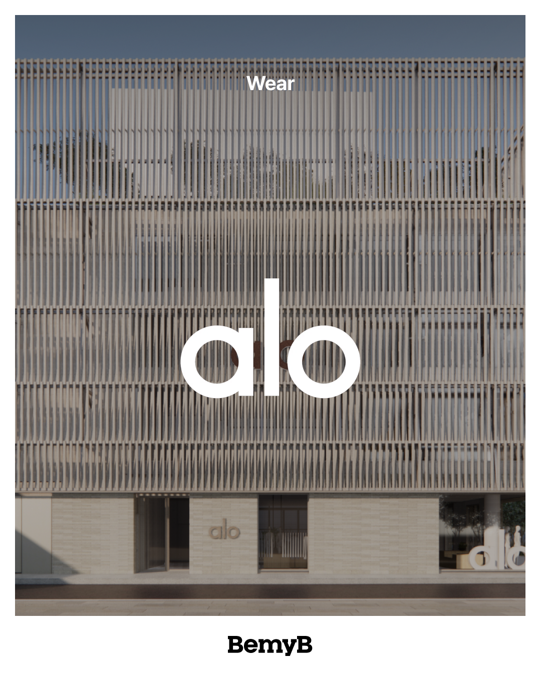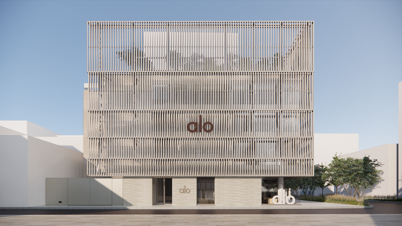 애슬레저(일상 운동복)의 뉴웨이브를 대표하는 브랜드답게, 플래그십 스토어 역시 인상적인 공간으로 꾸며졌어요. 알로 도산 스토어는 지상 3개 층의 리테일 공간과 1개 층의 오피스로 구성되어 있는데요. 건물 외벽 전체가 목재 루버 구조와 유리 커튼월로 이루어져 브랜드 철학을 건축적으로 구현했어요. 리테일 층 내부에는 ‘Air’, ‘Land’, ‘Ocean’을 상징하는 조형물을 배치하여 알로의 브랜드 정체성을 시각적으로 표현했죠. 루프탑에는 한국 자생식물과 베벌리 힐스 본사에서 영감을 받는 나무들로 정원을 조성하여, 스토어 자체를 자연과 명상이 어우러지는 도심 속 힐링 공간으로 만들었습니다.
