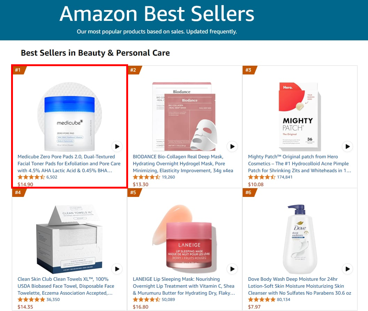 아마존 ‘프라임 데이’ 행사에서 뷰티 부문 판매량 1위에 오른 ‘제로모공패드’ / 자료 출처 아마존