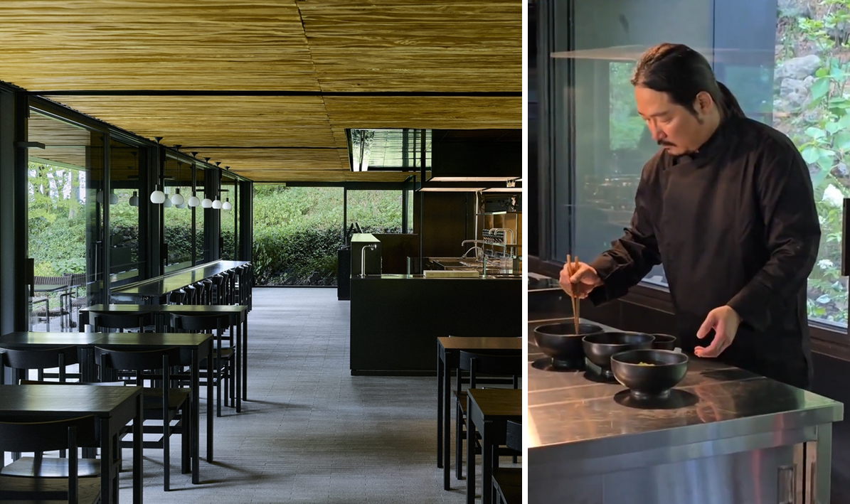 제주 티뮤지엄에 새롭게 문을 연 오설록의 말차 누들바는 ‘차(茶)를 먹는 새로운 경험’을 제안합니다. 이는 오설록이 처음 선보이는 식사공간이자 프리미엄 티 페어링 다이닝 공간으로, 브랜드 확장의 새로운 장을 여는 시도입니다. 곶자왈 숲을 배경으로 한 오픈 키친과 개방형 제면실도 매력적이죠. 덕분에 방문객은 하루 한 번 직접 뽑아내는 제면 과정을 눈앞에서 확인하고, 티뮤지엄에서 준비한 로스티드 티로 식전을 즐기며 차를 오감으로 경험합니다.