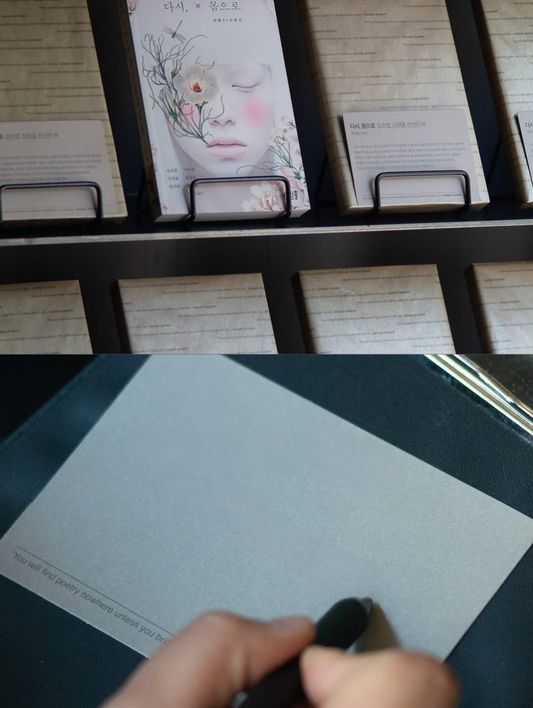 책에 감정을 전달하는 방식도 사소해보이지만 특별한데요. 책을 교환할 때 다음 독자에게 전하는 짧은 메모를 편지처럼 남길 수 있어요. 책은 그렇게 감정과 기억을 싣고 새로운 여정을 시작합니다. 이는 읽는다는 행위를 교환으로 확장하며, 문학이 남기는 흔적을 개인의 경험 너머로 그리는 이솝만의 철학이죠.