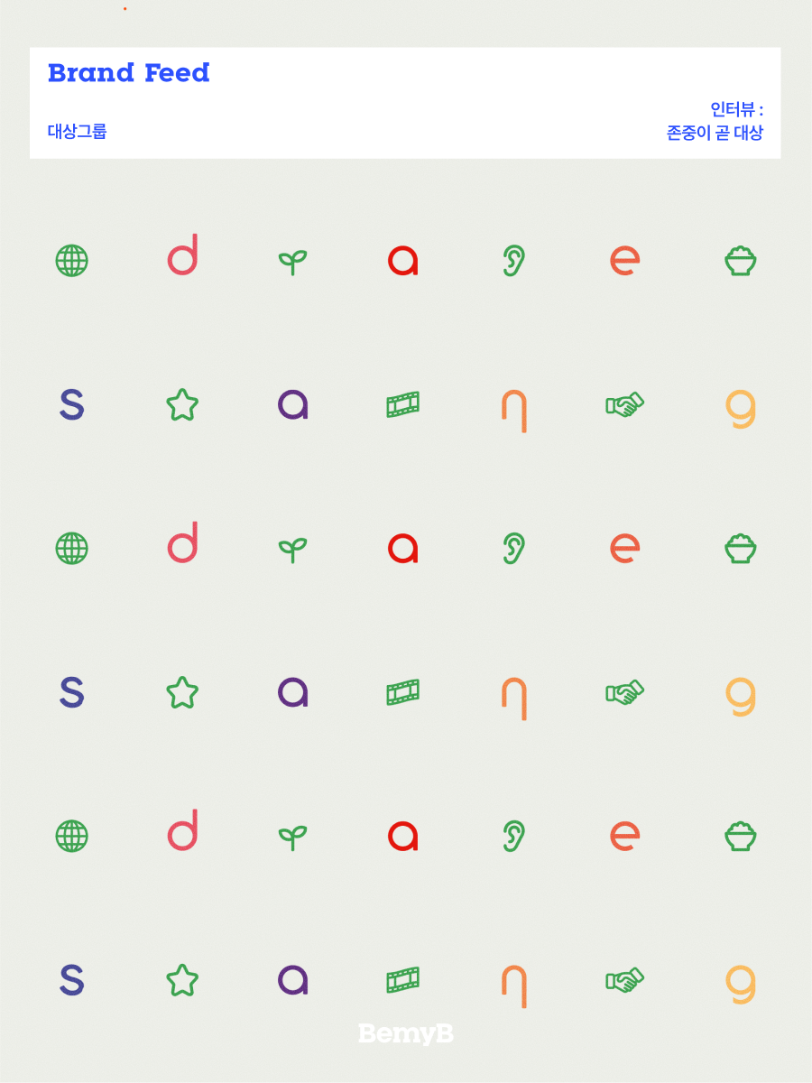 어: 기업의 아이덴티티는 흔히 시대와 사회가 요구하는 가치를 반영하는 경우가 많습니다. 하지만 70년 가까이 이어져 온 기업이라면 이야기가 조금 달라져요. 문서로 규정하지 않아도 회사를 지탱해 온 고유의 분위기와 조직문화가 이미 존재하기 때문이죠. 그래서 저희는 ‘Inside-Out’ 방식을 택했습니다. 창업주의 철학에서 비롯된 대상만의 문화, 그리고 오랜 시간 구성원들이 공유해온 지향 가치를 다시 꺼내 브랜드로 정의한 겁니다. 임원부터 신입사원까지 다양한 목소리를 모으는 과정에서 공통의 언어를 발견했고, 그것이 바로 ‘존중’이었습니다.