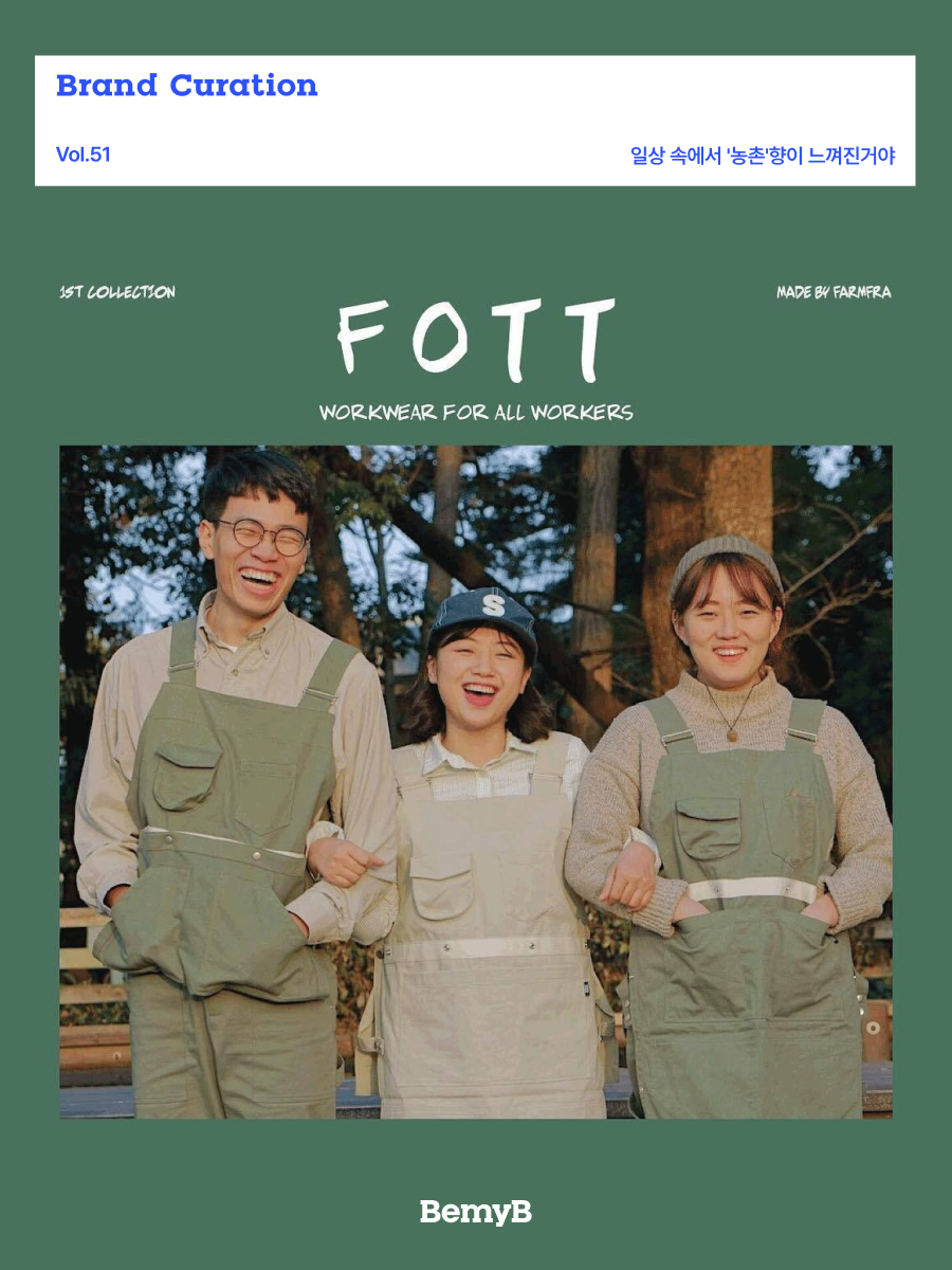 <팜프라촌> 프로그램을 통해 나와 촌 라이프가 맞는지 실험할 수 있는 기회를 제공하고, 촌에서의 현실을 경험하며 이주해도 좋을지 생각할 수 있게 합니다. 프로그램뿐만 아니라, 외부 커뮤니케이션 수단으로 팜프라 매거진과 스토어를 운영하기도 하는데요. 팜프라촌이 있는 남해 두모마을의 제철 농수산물을 '읽고 먹는 잡지' 컨셉으로 펀딩 사이트를 이용해 매거진을 제작합니다. 그리고 워크웨어 'FOTT' 제작을 통해 작업복은 몸빼바지만 있는 게 아닌, 멋/기능/정체성에 대한 고민이 필요하다는 팜프라만의 관점을 보여주었는데요. 요즘 애들도 촌 라이프를 즐길 수 있는 다양한 시도를 하는 점이 인상 깊네요.